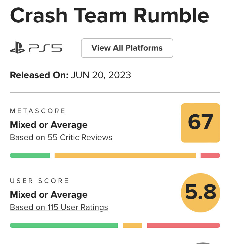 Firstly letâs get Crash Team Rumble out of the way because it was an absolute disaster on every level: