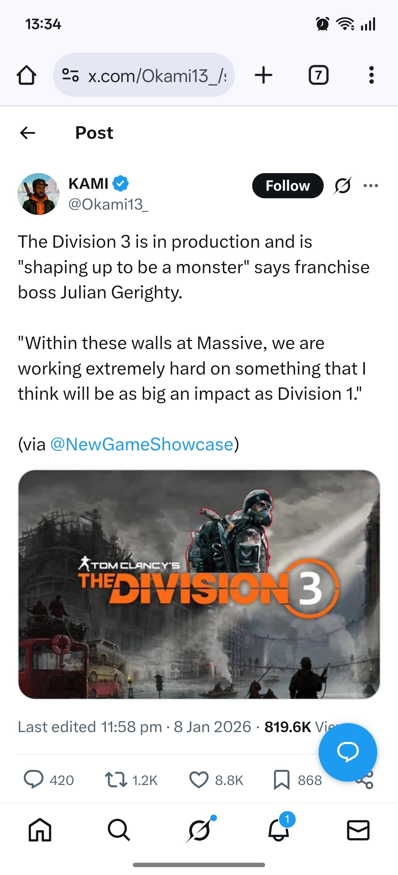 The Division 3 is in production and is "shaping up to be a monster"